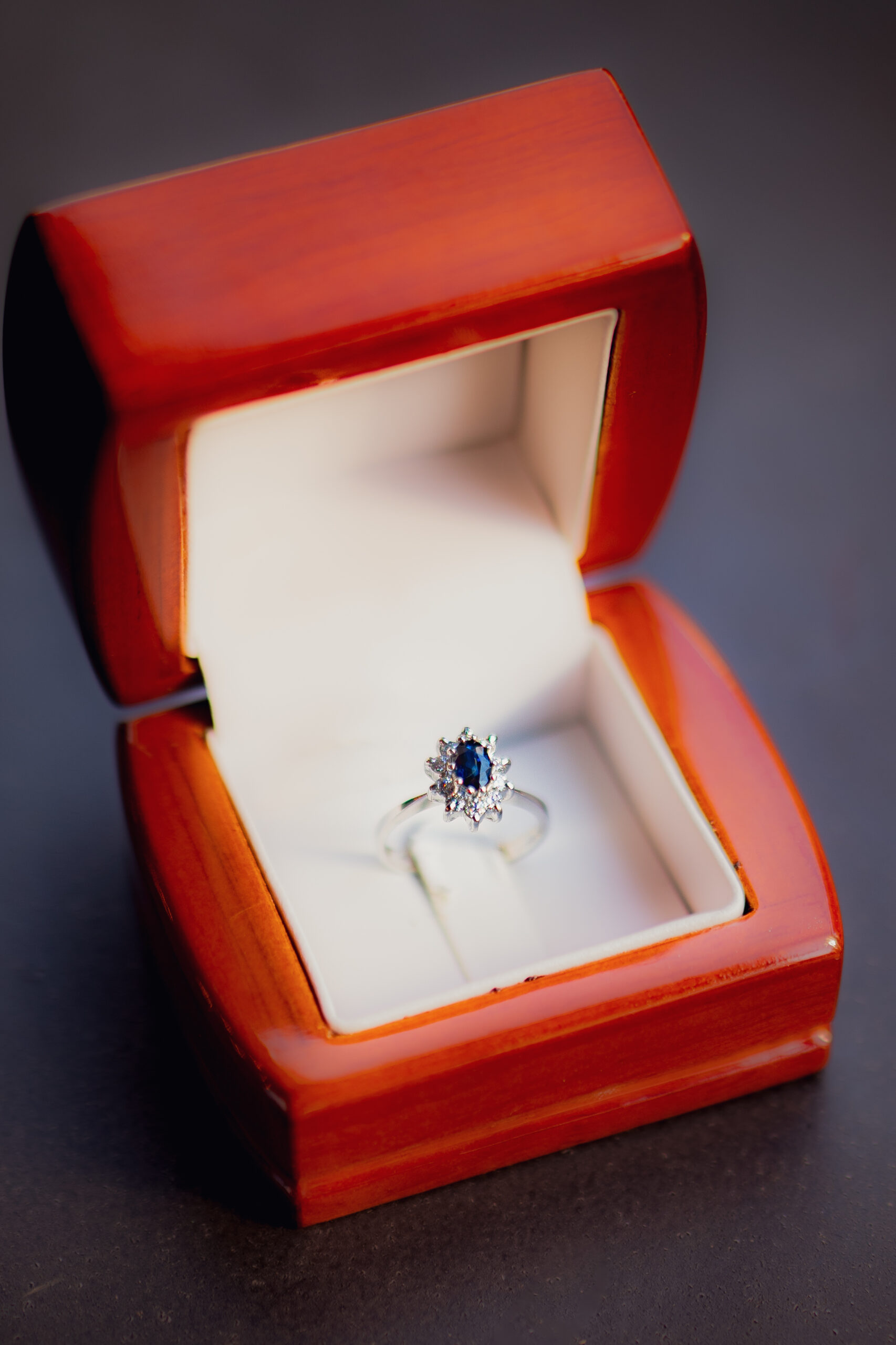 Este exquisito diseño presenta un elegante anillo en oro blanco de 18 K, adornado con un zafiro natural central de 6×4 mm que deslumbra por su color y claridad. Diez brillantes de 3 puntos cada uno rodean el zafiro, formando un halo radiante que realza su belleza. Con un peso total de 4 gramos.